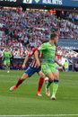 Match played in Wanda Metropolitano stadium the 7th of October 2018, victory of Atletico de Madrid 1 to 0 whit goal made by Ángel Correa. Before the match the Eagle Patrol (airplanes) pass over Wanda Metropolitano.