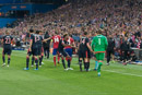 Victoria del Atletico de Madrid por 1 a 0 en el Vicente Calderon, gracias al tanto de Saul Ñiguez, tras driblar a varios jugadores del Bayern. A partir de ese momento el Atletico se replego y el Bayern paso al ataque, solamente interrumpido por alguna contra, ya en la segunda mitad los palos impidieron que el marcador fuese más amplio para ambos conjuntos.