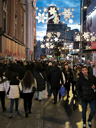 Fotografías tomadas el 27 de Diciembre en el centro de Madrid bajo las luces de Navidad, cientos de miles de personas llenaron las calles en estas fiestas. Photos taken the 27th of December 2025 in the center of madrid behind the Christmast lights, hundreds thousand people comes to the streets of the center of Madrid.