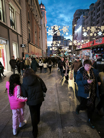 Fotografías tomadas el 27 de Diciembre en el centro de Madrid bajo las luces de Navidad, cientos de miles de personas llenaron las calles en estas fiestas. Photos taken the 27th of December 2025 in the center of madrid behind the Christmast lights, hundreds thousand people comes to the streets of the center of Madrid.