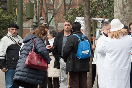 Fotografías tomadas en Neptuno, durante la manifestación de la Marea Blanca, la primera tras la derogación de la Ley de Privatización de la Sanidad Pública Madrileña, contra la Privatización del centro de Transfusiones Madrileño, y contra los recortes salariales en la Lavanderia de los Hospitales Públicos.