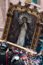 Fotografías tomadas durante la fiesta de la Paloma en el Barrio de la Latina en 2015. Muestran la preparación del paso y la procesión de la Virgen de la Paloma.
