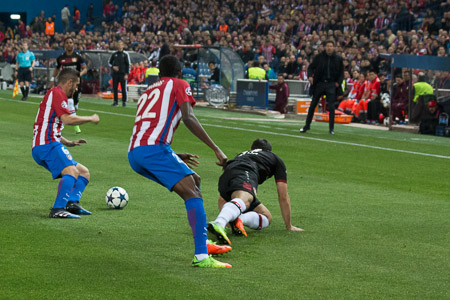 Partido disputado el 15 de Marzo, empate a 0 en el Calderon que hace valer el 2 a 4 favorable al Atletico de Madrid y que da su pase a cuartos de final de la Champions League. Pocas ocasiones por ambos bandos, si bien la primera media hora de partido fué de acoso y derribo por parte del Bayern que no supo concretar en gol, luego el Atletico de Madrid lo intentó en un par de ocasiones, y en la segunda mitad sólo la carga de los primeros 15 minutos del Bayern pudo incomodar a Jan Oblak, el Atletico no hizó ademán en ningun momento de presionar arriba al Bayern o de marcar siquiera el gol definitivo que sentenciase la eliminatoria. Match played the 15th of March in Vicente Calderon stadium, draw at 0 that make valuable the 2 to 4 in the match before played in Germany that gives the pass to quartes of Champions Leage to Atletico de Madrid. A few occasions for both sides but the tirthy first minutes was for Bayern Leverkusen which can´t make any goal, after Atletico de Madrid tries a couple of shoot to goal very well block by Leno (Bayern goalkeeper), and in the second part only the first fifteen minutes supose any problem for Jan Oblak (Atletico goalkeeper), in the second part Atletico don´t make upper pressure and don´t have any intention to make a goal that finish the match.