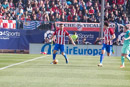 Sunny afternoon for a complicated match where Barcelona won whit two shoots after a repeal shoot to goal, Atletico de Madrid makes a goal as usual, pass over the area and head shoot to goal. The goals was made by Rafinha (Barcelona), Diego Godin (Atletico), and finally by Messi (Barcelona).