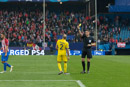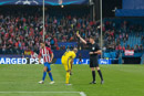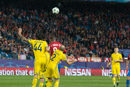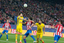 Photos taken the 1st of November in Vicente Calderon stadium, during the match Atletico de Madrid vs Rostov, victory of Atletico de Madrid in the injury time for 2 to 1. In a match whit many fail ocasions for Atletico de Madrid that only have got a few ones, the Rostov defends whit nine mens in front of his area.