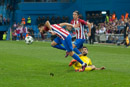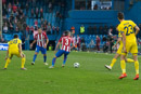 Photos taken the 1st of November in Vicente Calderon stadium, during the match Atletico de Madrid vs Rostov, victory of Atletico de Madrid in the injury time for 2 to 1. In a match whit many fail ocasions for Atletico de Madrid that only have got a few ones, the Rostov defends whit nine mens in front of his area.