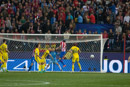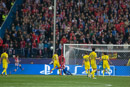 Photos taken the 1st of November in Vicente Calderon stadium, during the match Atletico de Madrid vs Rostov, victory of Atletico de Madrid in the injury time for 2 to 1. In a match whit many fail ocasions for Atletico de Madrid that only have got a few ones, the Rostov defends whit nine mens in front of his area.