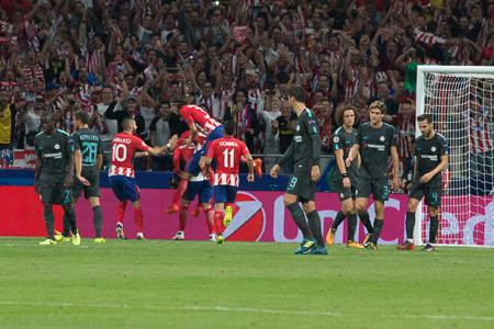 Partido de Champions disputado el 27/09/2017 en el Wanda Metropolitano, estreno en Champions League con derrota por 1 a 2, con goles de Griezmann en el 39 de penalty, empato Morata en el 59 y cuando el partido parecía morir en el 93 Batshuayi dió la victoria al Chelsea. Partido de muchas ocasiones para el Chelsea que al final se llevó un sufrido triunfo. El Atletico de Madrid se complica la Champions. Match played the 27/09/2017 in Wanda Metropolitano stadium, first match for this stadium in Champions League with lost of Atletico de Madrid for 1 to 2, goals made by Griezmann (min.39), Morata (min. 59) and Batshuyai (min.93). Finally Chelsea won a match where have got more goal ocassions. Atletico de Madrid will have a hard time in Champions League.