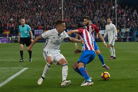 El 19 de Noviembre se disputó el último Derbi de Liga en el estadio Vicente Calderon, ganó por 3 a 0 el Real Madrid con tres goles de Cristiano Ronaldo, el primero de falta, ya en la segunda parte el segundo de penalty y el tercero de jugada tras rematar solo en el segundo palo. El Atletico dispuso de ocasiones pero sin finalizar la jugada, poco trabajo para Keylor Navas. The 19th of November was celebrated the last League Derby between Atletico de Madrid and Real Madrid in Vicente Calderon stadium, Real Madrid won by 3 to 0 whit three Goals of Cristiano Ronaldo, the first after a fault shoot, in the second half the second Goal after a penalty kick and the third one after a shoot in the second wood alone. At. Madrid have got a few ocasions but unfinished, little work for Keylor Navas (goalkeeper of Real Madrid).