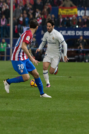 El 19 de Noviembre se disputó el último Derbi de Liga en el estadio Vicente Calderon, ganó por 3 a 0 el Real Madrid con tres goles de Cristiano Ronaldo, el primero de falta, ya en la segunda parte el segundo de penalty y el tercero de jugada tras rematar solo en el segundo palo. El Atletico dispuso de ocasiones pero sin finalizar la jugada, poco trabajo para Keylor Navas. The 19th of November was celebrated the last League Derby between Atletico de Madrid and Real Madrid in Vicente Calderon stadium, Real Madrid won by 3 to 0 whit three Goals of Cristiano Ronaldo, the first after a fault shoot, in the second half the second Goal after a penalty kick and the third one after a shoot in the second wood alone. At. Madrid have got a few ocasions but unfinished, little work for Keylor Navas (goalkeeper of Real Madrid).