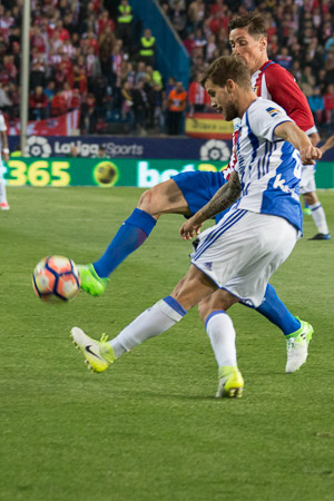 Partido disputado el martes 2 de Abril en el estadio Vicente Calderon, victoria del Atletico de Madrid por 1 a 0 con gol en la primera parte de Filipe Luis en una jugada embarullada, pocas ocasiones en un partido donde el Atletico guardo gasolina para su encuentro contra el Real Madrid del Sabado y donde la Real apenas disparo un par de veces a puerta. Match played the 2 of April in Vicente Calderon stadium, victory for 1 to 0 of Atletico de Madrid whit a goal of Filipe Luis (central deffender) in a hubbub moment of the game, very few ocassions where Atletico de Madrid save oil for the Saturday when played whit Real Madrid, Real Sociedad shoot to goal less than a couple occasions.