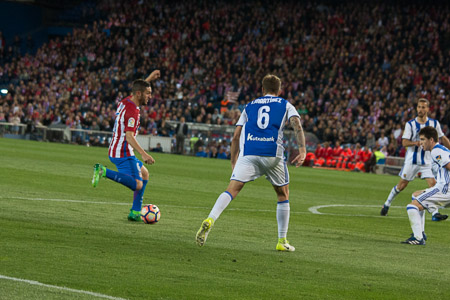 Partido disputado el martes 2 de Abril en el estadio Vicente Calderon, victoria del Atletico de Madrid por 1 a 0 con gol en la primera parte de Filipe Luis en una jugada embarullada, pocas ocasiones en un partido donde el Atletico guardo gasolina para su encuentro contra el Real Madrid del Sabado y donde la Real apenas disparo un par de veces a puerta. Match played the 2 of April in Vicente Calderon stadium, victory for 1 to 0 of Atletico de Madrid whit a goal of Filipe Luis (central deffender) in a hubbub moment of the game, very few ocassions where Atletico de Madrid save oil for the Saturday when played whit Real Madrid, Real Sociedad shoot to goal less than a couple occasions.