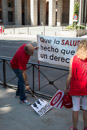 Concentración de la Marea Blanca frente al Ministerio de Sanidad, en el parque del Paseo de la Castellana, varias plataformas han confluido en la protesta, la Plataforma de Afectados por la Hepatitis C, los Servicos de la Lavanderia de Hospitales, y la plataforma contra la privatización de la Donación de Sangre. Cientos de personas aciudieron a la protesta.