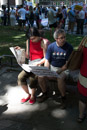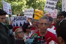 Concentración de la Marea Blanca frente al Ministerio de Sanidad, en el parque del Paseo de la Castellana, varias plataformas han confluido en la protesta, la Plataforma de Afectados por la Hepatitis C, los Servicos de la Lavanderia de Hospitales, y la plataforma contra la privatización de la Donación de Sangre. Cientos de personas aciudieron a la protesta.