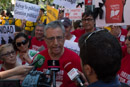 The White Tide congregates in front of the Healthcare MInister, various platforms come, like Hepatitis C affected, Laundry Services of Hospitals, and the platform agaisnt Blood Privatization. Hundreds of people come to the protest.