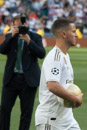 Photos taken the 13th of June in Santiago Bernabeu stadium, the new Galactic player has been cost over 100 millions of € and comes from Chelsea. Hundreds of media comes from all over the world and 50.000 people fill the Santiago Bernabéu for wellcome the new player.