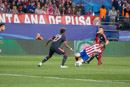 Victoria del Atletico de Madrid por 1 a 0 en el Vicente Calderon, gracias al tanto de Saul Ñiguez, tras driblar a varios jugadores del Bayern. A partir de ese momento el Atletico se replego y el Bayern paso al ataque, solamente interrumpido por alguna contra, ya en la segunda mitad los palos impidieron que el marcador fuese más amplio para ambos conjuntos.