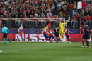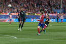Victoria del Atletico de Madrid por 1 a 0 en el Vicente Calderon, gracias al tanto de Saul Ñiguez, tras driblar a varios jugadores del Bayern. A partir de ese momento el Atletico se replego y el Bayern paso al ataque, solamente interrumpido por alguna contra, ya en la segunda mitad los palos impidieron que el marcador fuese más amplio para ambos conjuntos.