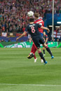 Victoria del Atletico de Madrid por 1 a 0 en el Vicente Calderon, gracias al tanto de Saul Ñiguez, tras driblar a varios jugadores del Bayern. A partir de ese momento el Atletico se replego y el Bayern paso al ataque, solamente interrumpido por alguna contra, ya en la segunda mitad los palos impidieron que el marcador fuese más amplio para ambos conjuntos.