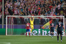 Victoria del Atletico de Madrid por 1 a 0 en el Vicente Calderon, gracias al tanto de Saul Ñiguez, tras driblar a varios jugadores del Bayern. A partir de ese momento el Atletico se replego y el Bayern paso al ataque, solamente interrumpido por alguna contra, ya en la segunda mitad los palos impidieron que el marcador fuese más amplio para ambos conjuntos.