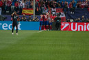 Victoria del Atletico de Madrid por 1 a 0 en el Vicente Calderon, gracias al tanto de Saul Ñiguez, tras driblar a varios jugadores del Bayern. A partir de ese momento el Atletico se replego y el Bayern paso al ataque, solamente interrumpido por alguna contra, ya en la segunda mitad los palos impidieron que el marcador fuese más amplio para ambos conjuntos.