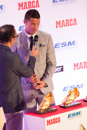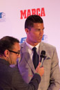 Fotografías tomadas el Martes 13 de Octubre en el Hotel Palace, Cristiano Ronaldo recibió la cuarta Bota de Oro de su carrera siendo el único jugador en tener cuatro trofeos. Florentino Pérez y el Presidente de Marca agradecieron el esfuerzo del jugador. Cristiano subió a su familia al estrado donde posaron con los cuatro trofeos, falto al evento la hermana de Cristiano.