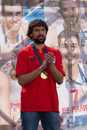 Photos taken in Callao one day before won the Eurobasket 2015 in Lille (France), Carlos Peralías the singer of the oficial song of the Spanish Basket team comes for sing the song direct for the champions, the team that wons the tittle comes all too. Pau, Rudy, Reyes, and Mirotic comes whit the rest of the players. All of them enjoy celebrating the tittle in front of hundreds of people that comes from all of Spain for celebrate.