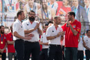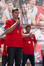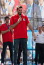 Photos taken in Callao one day before won the Eurobasket 2015 in Lille (France), Carlos Peralías the singer of the oficial song of the Spanish Basket team comes for sing the song direct for the champions, the team that wons the tittle comes all too. Pau, Rudy, Reyes, and Mirotic comes whit the rest of the players. All of them enjoy celebrating the tittle in front of hundreds of people that comes from all of Spain for celebrate.