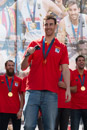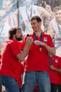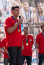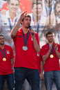 Photos taken in Callao one day before won the Eurobasket 2015 in Lille (France), Carlos Peralías the singer of the oficial song of the Spanish Basket team comes for sing the song direct for the champions, the team that wons the tittle comes all too. Pau, Rudy, Reyes, and Mirotic comes whit the rest of the players. All of them enjoy celebrating the tittle in front of hundreds of people that comes from all of Spain for celebrate.