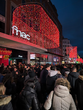 Fotografías tomadas el 27 de Diciembre en el centro de Madrid bajo las luces de Navidad, cientos de miles de personas llenaron las calles en estas fiestas. Photos taken the 27th of December 2025 in the center of madrid behind the Christmast lights, hundreds thousand people comes to the streets of the center of Madrid.