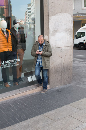 Fotografías tomadas el 22 de Noviembre de 2014, Sabado a las 11:30 h de la mañana, tranquilidad en el centro solo marcado por las largas colas frente a Doña Manolita, para hacerse con un cupón de la lotería de Navidad. Sigue la crisis, con terrazas casi vacias en un dia de sol y sombra y agradable temperatura. Destaca un comercio cerrado y con el cartel de Se Alquila en una Gran Via que ya no es lo que era.