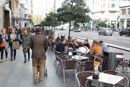 Fotografías tomadas el 22 de Noviembre de 2014, Sabado a las 11:30 h de la mañana, tranquilidad en el centro solo marcado por las largas colas frente a Doña Manolita, para hacerse con un cupón de la lotería de Navidad. Sigue la crisis, con terrazas casi vacias en un dia de sol y sombra y agradable temperatura. Destaca un comercio cerrado y con el cartel de Se Alquila en una Gran Via que ya no es lo que era.