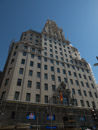 Walk in the 6th of July over Callao, Gran Via, Hortaleza, and Plaza de Colon, hot day in the capital of Spain.