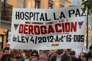 Hundreds of people march in the White Tide celebrated the 15 of November of 2015 in Madrid, the laundry public Hospital personal and the Hepatitis C Afected Platform march again whit Batucada rithm, claiming for his rights.