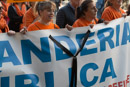 Hundreds of people march in the White Tide celebrated the 15 of November of 2015 in Madrid, the laundry public Hospital personal and the Hepatitis C Afected Platform march again whit Batucada rithm, claiming for his rights.