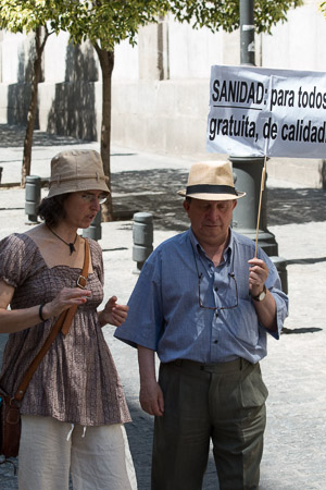 Fotografías tomadas en las cercanías del Museo Reina Sofía, en las proximidades del Colegio de Medicos. La marea Blanca volvió a salir una vez más reclamando un sistema sanitario público y gratuito, y pidiendo también tratamiento para los enfermos de Hepatitis C. Photos taken closed Reina Sofía Museum, near of the Medical College. White tide march again for request a public and free Healhtcare system, the Hepatitis C platform request the medical treathment for all the illness with Hepatitis C.