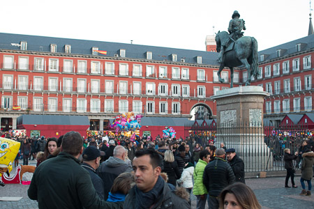 Fotografías tomadas el 6 de Diciembre en el Mercadillo Navideño de Madrid en la Plaza Mayor, decenas de puestos ofrecian articulos de broma, cotillon y Navidad. Miles de personas acudieron al primer día de apertura del mercadillo. Photos taken the 6th of December in Plaza Mayor of Madrid (Spain), teens of Christmas market stall offer joke articles, New Year party and Belen articles. Thousands of people comes to the first day of the traditional Spanish market.