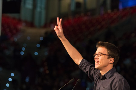 Mitin celebrado en la Caja Mágica el Domingo 13 de Diciembre de 2015, Podemos congregó a más de 11.000 personas, y contó con la colaboración del candidato a la Presidencia Pablo Iglesias, la Alcaldesa de Barcelona Ada Colau, Carolina Bescansa (la número dos de las listas de Madrid de Podemos). El mitin pidió el voto para blindar derechos fundamentales como la vivienda, la educación y la sanidad, entre otras muchas propuestas. Mitin that was celebrated in Caja Mágica from Podemos the Sunday 13 of December 2015, congregates more than 11.000 people, and count whit the presence of the fat cat of the Podemos party, the candidate for presidence Pablo Iglesias, the Council of Barcelona Ada Colau, Iñigo Errejon (number two of Podemos party), Carolina Bescansa (number two of the list of Podemos for Madrid), and others. Podemos request the vote for secure the rights for a House, Education, and Healthcare in the Spanish Constitution preventing that a right wing party can privatize the education or Healthcare, and giving support to the house owners evading the eviction from his houses by banks.