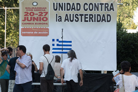 El día 27 de Junio de 2015, se celebró en la cuesta de Claudio Moyano, un mítin en apoyo a Grecia, en solidaridad con su situación política, económica y social. Al acto acudieron cientos de personas, y líderes de Podemos, como Pablo Iglesias o Iñigo Errejón. The 27th of June was celebrate one mitin in cuesta Claudio Moyano (Madrid) for support Greece in his dificult situation, economical, political, and social. Hundreds of people comes, and some leaders of Podemos too, like Pablo Iglesias and Iñigo Errejon.