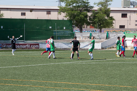 Fotografías tomadas en la Ciudad Deportiva del Villaverde Boetticher, el día 18 de Mayo en un soleado día que termino 3 a 1 a favor del Villaverde. Partido muy disputado que empezo con un gol del Navalcarnero en un penalty por mano de un defensa local, empataron rápido los locales tras un pase al segundo palo que de cabeza remato un jugador del villaverde al palo del portero, gol que igualo el encuentro marcado por el exceso de amarillas al conjunto local, el gol de Moro tras un trallazo cruzado puso por delante a un villaverde, que siguio atacando hasta que en el descuento en una contra planto 4 jugadores contra un unico defensa del Navalcarnero, pase y gol.