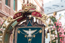 Fotografías tomadas durante la fiesta de la Paloma en el Barrio de la Latina en 2015. Muestran la preparación del paso y la procesión de la Virgen de la Paloma.