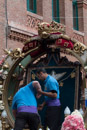 Fotografías tomadas durante la fiesta de la Paloma en el Barrio de la Latina en 2015. Muestran la preparación del paso y la procesión de la Virgen de la Paloma.